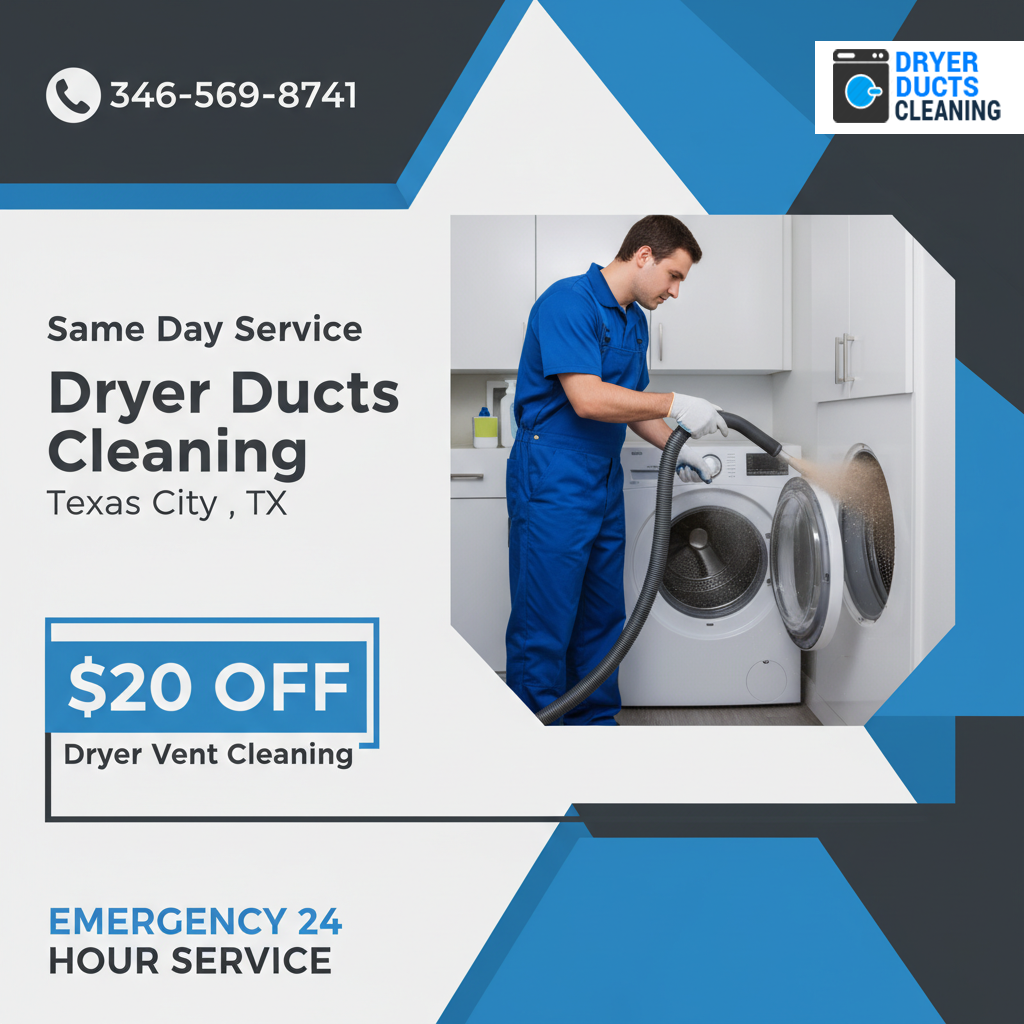 By removing lint buildup and restoring full ventilation Texas City Dryer Ducts Cleaning TX promises to keep your dryer cool, operate smoothly and put as little load on it as possible. This prolongs the appliance's life overall, accelerates drying, consumes less energy and prevents costly repairs caused by inadequate air circulation.